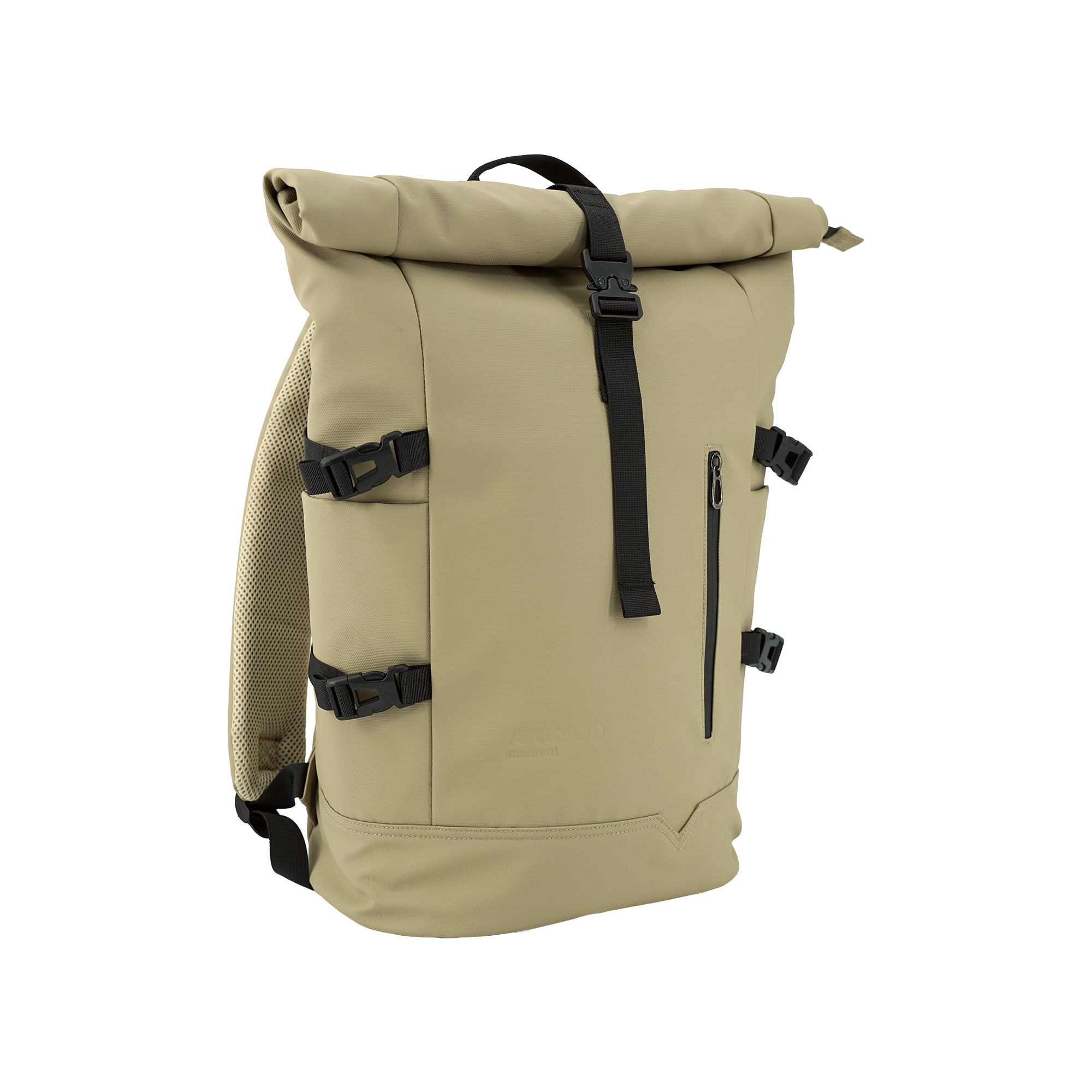 Akinod décline en effet 3 formes empruntées aux usages courants (voyage, bureau, week-end) : un shopping bag (disponible en olive, moutarde, bleu marine ou rose), un roll-top (type sac urbain, proposé en beige, kaki et bleu marine) et un format vanity/sac à dos (décliné en olive et bleu marine).