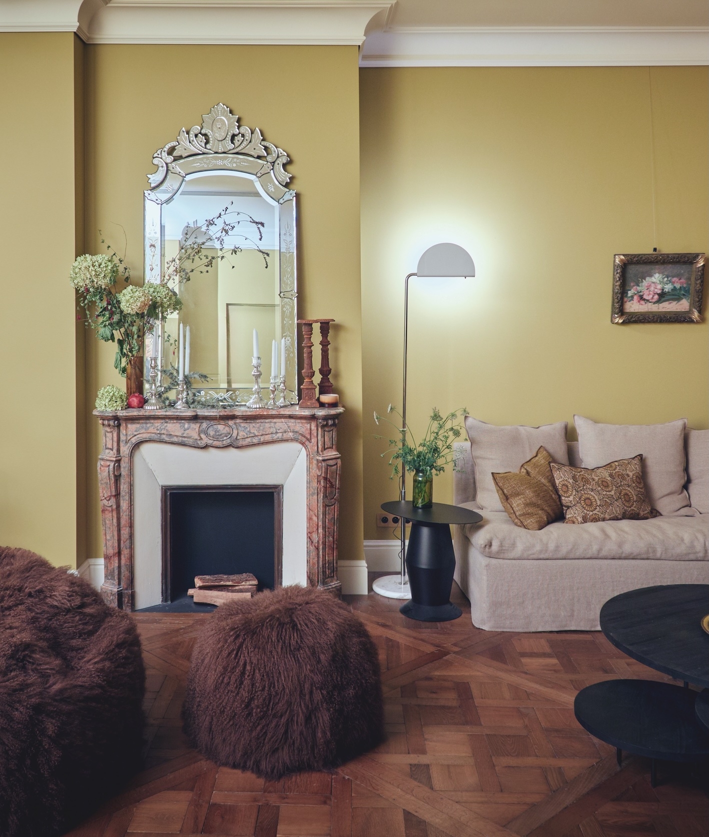Conçu comme un appartement traversant différentes ambiances, le lieu se distingue par une scénographie immersive qui associe les références classiques, les détours stylistiques et les assemblages inattendus. Un espace où des éléments architecturaux traditionnels (parquet Versailles, moulures, plafonds à caissons) se mêlent à des compositions plus contemporaines ou éclectiques, jouant sur les contrastes de matériaux, de motifs et d’époques.