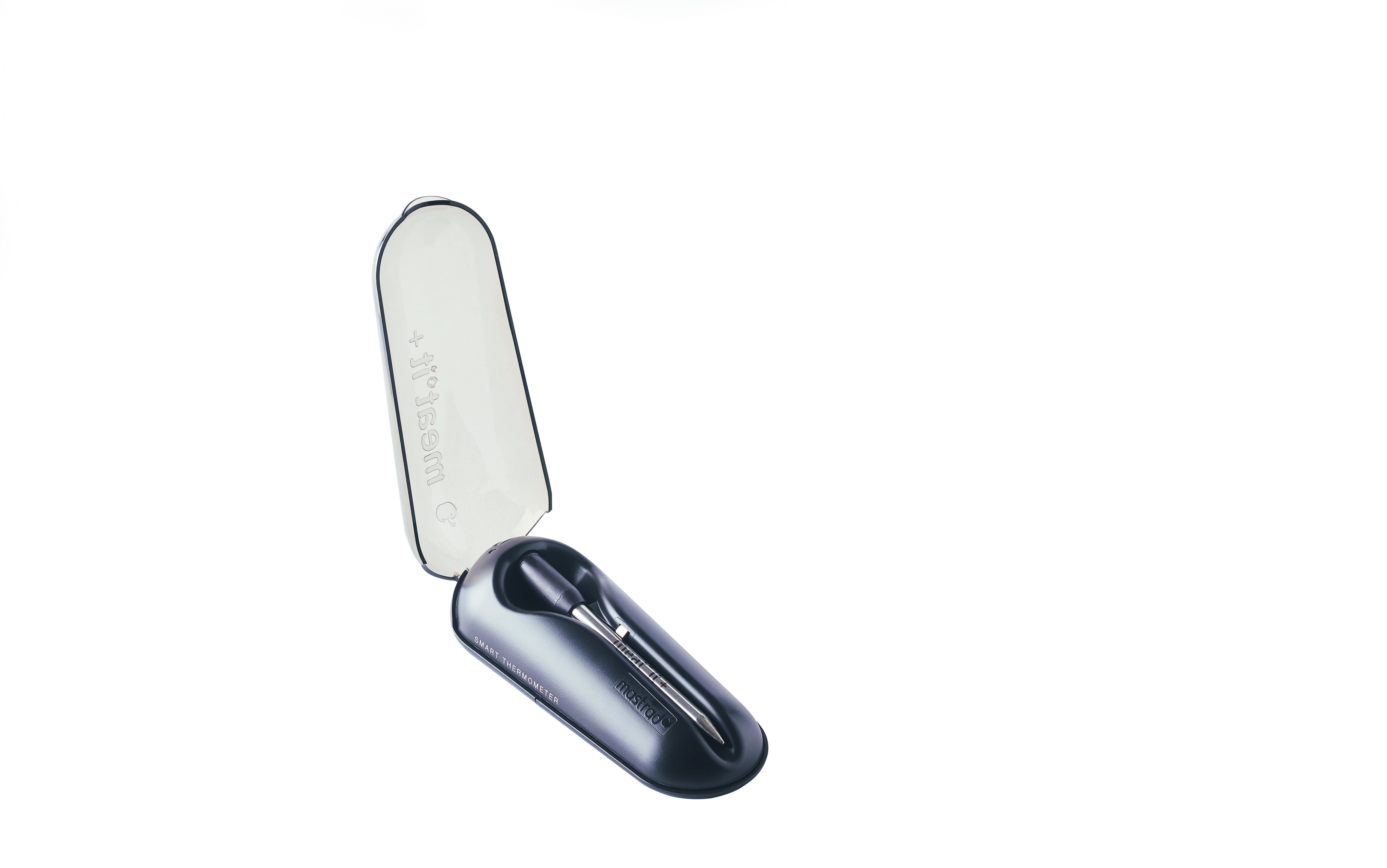Deux capteurs mesurent simultanément au degré près la vitesse de cuisson, afin de procurer un résultat précis, et la température à cœur du produit., Compatible avec pratiquement tous les modes de cuisson (induction, four, plancha, barbecue, etc.) à l’exception du four à micro-ondes et résistant jusqu’à 3 minutes au contact direct des flammes, l’appareil s’active automatiquement une fois sorti de son boitier. Meat°it + est reliée à une application dédiée et gratuite qui permet de programmer la cuisson, de suivre son avancée via un smartphone grâce à des alertes sonores et visuelles et de partager ses réalisations sur les réseaux sociaux.