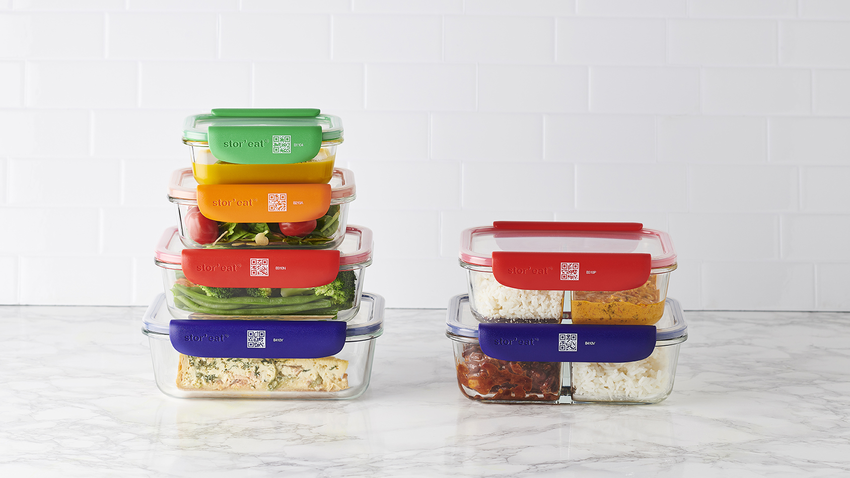 En pratique, Store’eat est une collection pour l’heure composée de boîtes et de bocaux ronds en verre borosilicate. Un kit de conservation sous vide (sacs réutilisables 30 à 50 fois + une pompe) sera lancé cet hiver. Ces contenants sont dotés de QR codes qui les connectent à l’application. En les scannant et en renseignant quelques informations sur les produits, l’utilisateur est alerté sur les dates de péremption via des notifications automatiques.