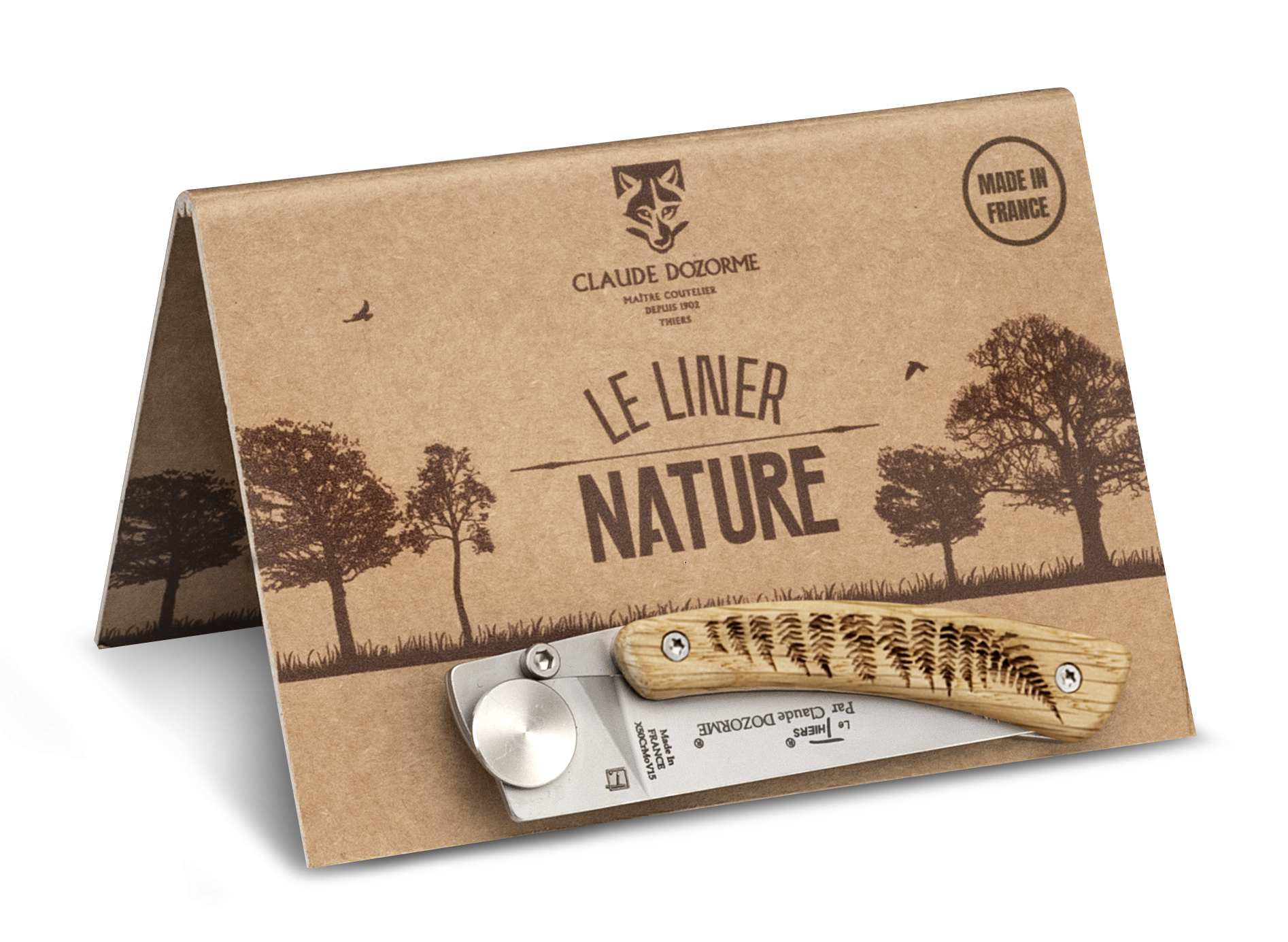 Aussi à l’aise en ville qu’outdoor, les Liner Animalis (manche en noyer) et Nature (manche en chêne) sont dotés de lames en acier haut de gamme (0,5 % de carbonne, 15 % de chrome, 1 % de molybdène et vanadium) qui confèrent au couteau un tranchant rasoir et un réaffutage manuel facile.