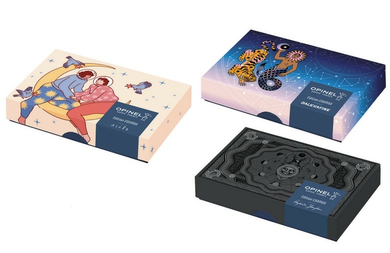 C’est un voyage céleste et incroyablement poétique qu’Opinel propose en cette rentrée. Qu’il évoque l’infini, le mystère, les rêves, les astres, etc., le cosmos suscite une fascination universelle. Le coutelier savoyard a ainsi invité trois artistes à explorer ce thème afin d’habiller son iconique couteau pliant N°08 en proposant leur interprétation des corps célestes. Elisa, alias Asile, est une artiste et illustratrice française.