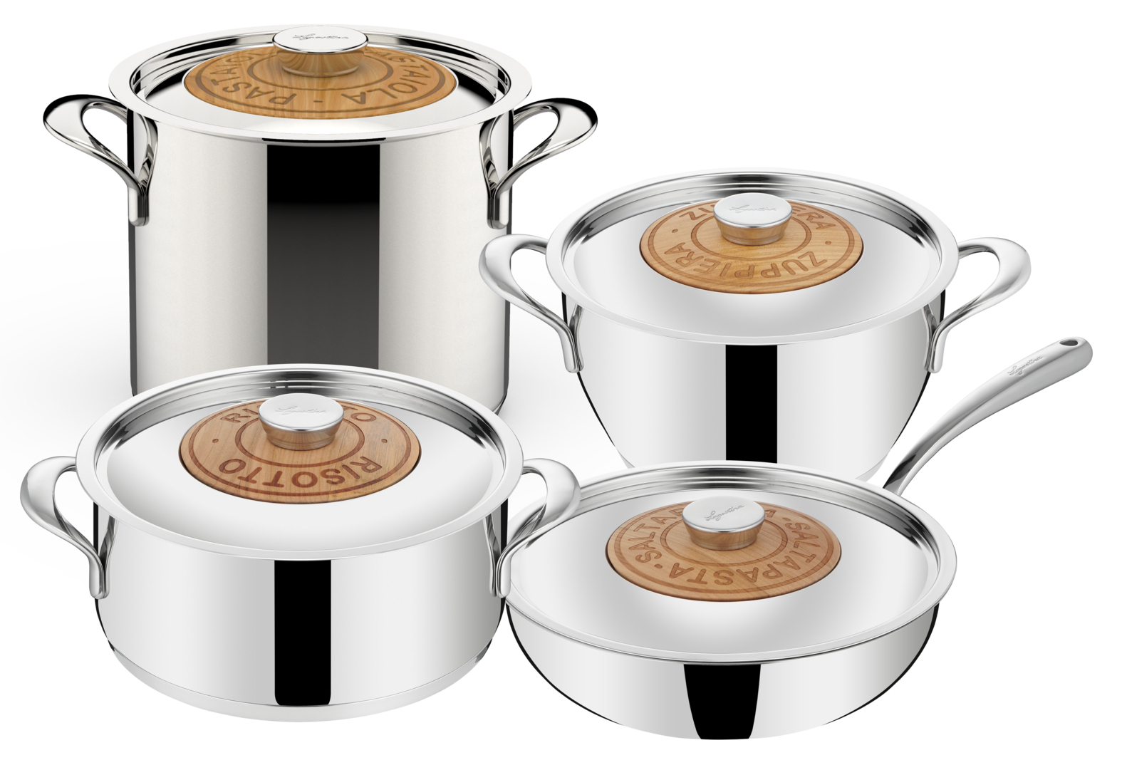 Plat emblématique de l’Italie, les pâtes évoquent une cuisine familiale et variée. La nouvelle collection Emozione comporte donc naturellement une marmite Pastaiola (ø 20 cm ; 5,4 l). En acier inoxydable 18/10, elle arbore une finition polie miroir ainsi qu’un couvercle en bois de cerisier portant le nom du produit. Le fond Lagotherm 3 couches assure une diffusion uniforme de la chaleur. Prix public : 179,99 €.