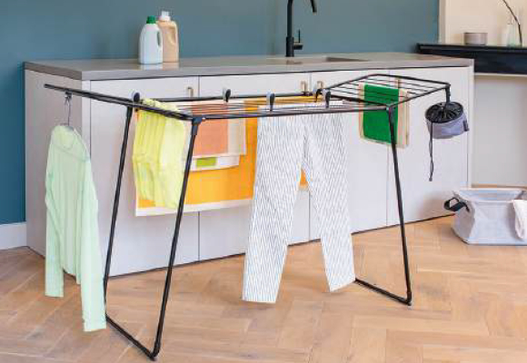 Dans cette perspective, Brabantia a enrichi cet automne sa gamme d'étendoirs de deux modèles garantis 5 ans et disponibles en finitions matt black ou white. Le HangOn Drying Too (prix public à partir de 59 €), disponible en 18 ou 22 m, a beau être compact, il se caractérise par sa capacité, pouvant accueillir le contenu d’une machine complète de linge.