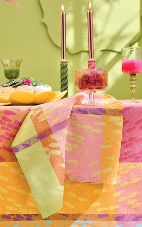 Le linge de table est aussi un terrain fertile pour les collaborations, permettant de créer des collections signatures et d’ancrer les marques dans l'air du temps. Béatrice Brandt cite plusieurs exemples : « Nous parvenons toujours à nous inscrire dans les tendances, des plus nature aux plus pop : par exemple avec une collection très colorée comme Alegria, ou des collaborations comme celle avec Julien Sebban. »