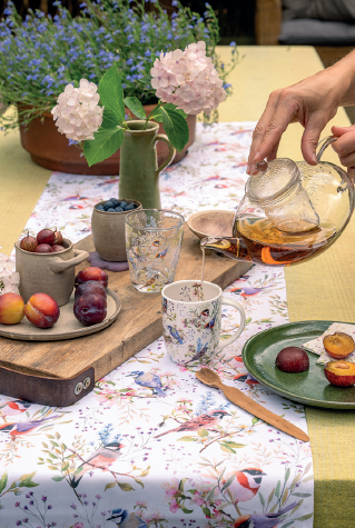 Face au succès des sets, le chemin de table conserve une place de choix en tant qu’élément de composition et de créativité. Et pour cause, l’art de la table contemporaine se nourrit également de nouveaux gestes : jouer des superpositions avec un chemin de table ou des sous-assiettes, ou encore détourner les usages du textile pour donner du relief à la mise en scène, en jouant sur les contrastes de textures et de tonalités. Le mix & match devient la règle du jeu : combiner les imprimés, oser des matières naturelles ou enduites, tout en gardant un fil conducteur pour ne pas surcharger.