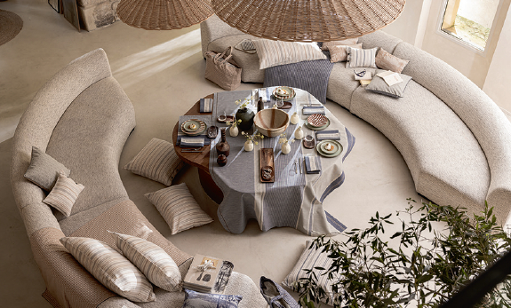 Pour Lionel Dubos (Haomy), tous les petits formats marquent des points. « Très clairement, les sets de table, les chemins de table et les serviettes gagnent du terrain chaque saison. Ils correspondent à des usages plus contemporains, plus modulables, et s’adaptent aussi bien aux tables des grandes occasions qu’aux tables du quotidien. Nous les mettons en scène en jouant sur la superposition, le mix & match de matériaux et de couleurs, en les associant à d’autres éléments de décoration. L’idée est de montrer qu’il n’y a pas qu’une seule façon de dresser la table et que toutes sortes de combinaisons existent. »