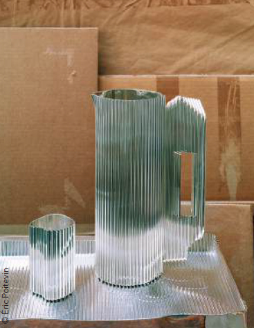 Confiée à l’artiste britannique Rachel Whiteread, cette édition propose un “ensemble à boire” composé d'une carafe, d'un décanteur, de plateaux, de plats et de timbales à section irrégulière. Les lignes verticales nettes de chaque pièce évoquent le motif cannelé du carton ondulé et révèlent la capacité de l'argent massif à capturer la lumière.