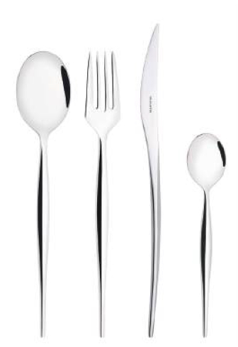 Bugatti s'est inspiré du mouvement naturel d'un brin d’herbe pour créer des lignes fines et organiques de la collection Natura, réalisée en acier inoxydable 18/10 de 5 mm d'épaisseur, afin de garantir la précision des arêtes, l'ergonomie et la tenue dans le temps. Natura a reçu le Red Dot Design award 2025. Prix public : 233 € le set de 24 pièces.
