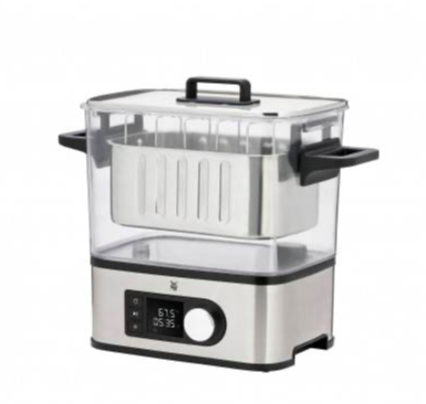 Le cuiseur sous vide est le partenaire de la cuisine saine car il cuit en douceur des viandes, des poissons et des légumes. Lono Pro de WMF permet un réglage précis de la température de 35° à 90°C. Sa fonction minuterie permet une cuisson jusqu’à 72 heures. Une pompe de circulation assure une température uniforme dans le réservoir d’eau de 6 l en tritan sans BPA. Puissance : 1 500 W.