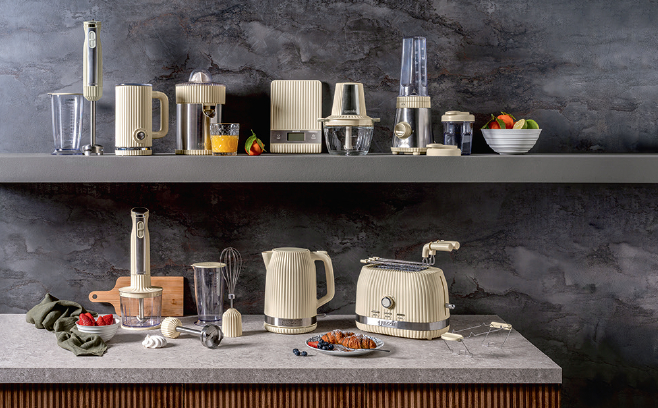 La marque a en effet dévoilé en février huit appareils déclinés en trois coloris (bleu, anthracite, crème) qui se caractérisent par une recherche de cohérence de forme et chromatique afin d’être assortis avec ses autres collections cuisine, en particulier Cook&Color, Store&More et Everywhere. La nouvelle ligne Sous Chef se distingue par un élément graphique inspiré du velours côtelé en finition mate.