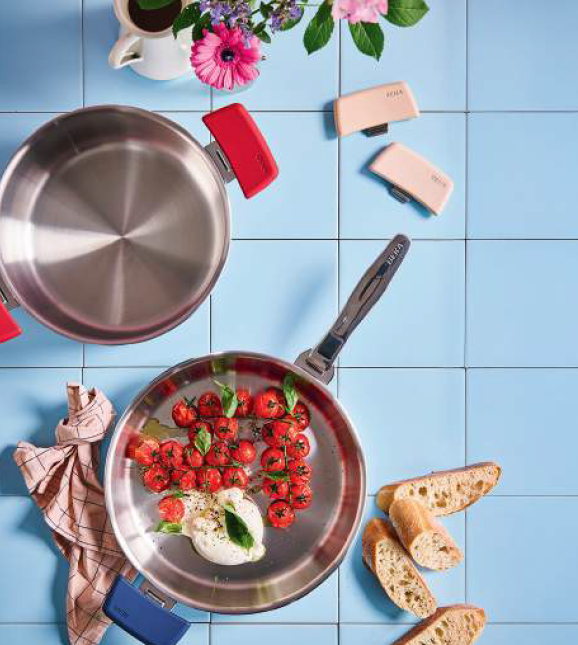 La collection Unlock qui sera disponible en début d'année marque pour sa part l'arrivée de Zwilling sur le segment des ustensiles de cuisson à manches amovibles. Cette batterie premium conjugue système de préservation sous vide utilisant des couvercles en verre Fresh & Save compatibles. Les articles en acier inoxydable ont un corps Sigma Clad à trois couches tandis que les poêles en aluminium forgé, fabriquées en Italie par Ballarini, sont dotées du revêtement céramique antiadhésif Ceraforce Titanium sans PFAS.