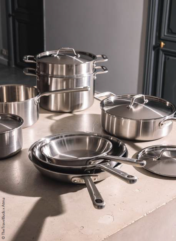 Si les marques patrimoniales consolident leurs positions, les acteurs plus récents gagnent en visibilité. Forte de plus de 100 000 poêles et 150 000 ustensiles de cuisson en inox 3-ply vendus en moins de trois ans, Atma compte aujourd’hui plus de 60 000 clients. Après s’être d’abord concentrée sur la vente en ligne, la marque a ouvert sa distribution au retail physique en 2025, épaulée par quatre commerciaux de terrain répartis en France : elle compte une soixantaine de boutiques partenaires spécialisées en ustensiles de cuisine, des drogueries ou plus généralement dans les biens de consommation pour la maison.